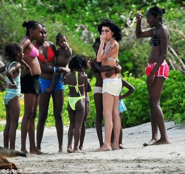 Amy Winehouse enjoyed cuddles from local children on at St Lucia beach today.