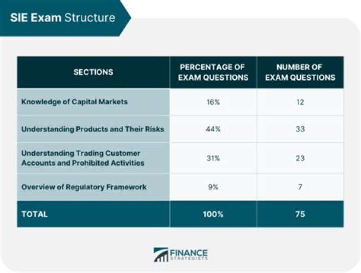 The SIE exam is a computerized, closed book (in other words, no book), one-hour and 45-minute exam. The exam consists of 85 multiple-choice questions (although only 75 of them count toward your score — see the next section).Click to see full answer. Considering this, what is the pass rate for the Sie exam?70%Also Know, is the SIE exam difficult? The SIE exam is not easy. You should be prepared for a challenge. You are expected to know about capital markets, securities products, and regulations, as well as how to trade securities and what products are prohibited. Similarly, you may ask, how long is the SIE exam? Structure of the SIE Exam The 75 questions are actually 85, since there are 10 randomly distributed pre-test questions that do not count towards the score on the exam. Candidates have an hour and forty-five minutes to complete the entire exam.How do you pass the SIE exam? Before taking the SIE, you should carefully consider the following five tips for exam success. Know the Terminology. SIE Exam questions require an understanding of securities industry language. Know Which Terms Have Multiple Meanings. Know the Essential Formulas. Be Ready to Apply Key Concepts. Prepare, prepare, prepare.