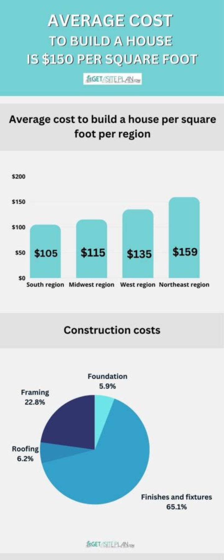 Cost per square feet can be as low as $60.00 per square feet, and up to $1,000.00 per square feet, and it all depends who is the builder and where is the location.Click to see full answer. In respect to this, how much does it cost per square foot to build a house by zip code? New single-family homes sold in 2017 Region Average Cost Per Square Foot Median Cost Per Square Foot U.S. (all regions) $111.05 $101.25 Northeast $161.53 $148.95 Midwest $106.79 $104.15 Beside above, how much does it cost to build a 1200 sq foot house? – 1,200 square feet, for $125,000. $104 per square foot. – 3,670 square feet, for $312,000. $85 per square foot. Also, what is included in cost per square foot to build a house? The average cost to build a house is $248,000, or between $100 to $155 per square foot depending on your location, size of the home, and if modern or custom designs are used. Cost Per Square Foot to Build a House. Region Cost Per Square Foot South Region $100 Midwest Region $109 West Region $131 Northeast Region $155 What is the most expensive part of building a house? Financial Information Framing $28,000. Not surprisingly, the most expensive part of home construction is the framing. Foundation $17,000. Landscaping $11,500. Windows and Doors $11,000. Plumbing $11,000. Cabinets and Countertops $10,500. Electrical $10,000. Siding $9,000.