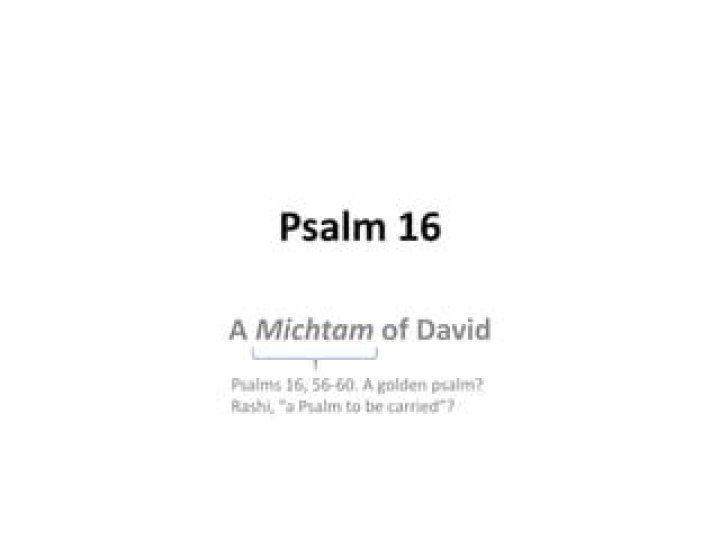 Definition of Michtam. —used in the Bible in the headings of Psalm 16 and Psalms 56 to 60 (AV) possibly to suggest atonement.Click to see full answer. Besides, what does Mitcham mean?Mitcham Name Meaning. English: habitational name from Mitcham in Surrey, so named from Old English micel ‘big’ + ham ‘homestead’, ‘settlement’.Furthermore, what does Mizmor mean in Hebrew? In the original Hebrew text the book as a whole was not named, although the titles of many individual psalms contained the word mizmor, meaning a poem sung to the accompaniment of a stringed instrument. Keeping this in consideration, what does Miktam mean? ???????) is a word of unknown meaning found in the headings to Psalms 16 and 56–60 in the Hebrew Bible. Miktam corresponds to the Babylonian nakamu, lid, metal cover for a vessel, but efforts to derive a meaning for the term in the Psalms have not been convincing.What does Selah mean in Hebrew?Selah is defined as a Hebrew word that has been found at the ending of verses in Psalms and has been interpreted as an instruction calling for a break in the singing of the Psalm or it may mean “forever.” An example of Selah is seeing the term used seventy-one times in the Psalms in the Hebrew Bible.